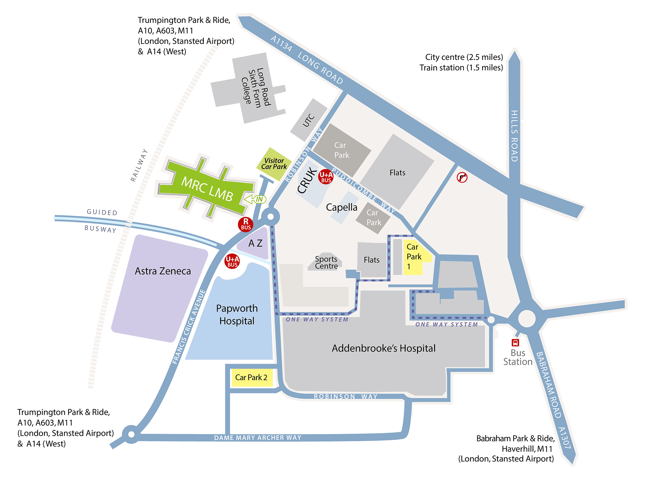 - Bus Stops: Addenbrooke’s is well-served by public transport. The map will show the locations of bus stops within the hospital grounds.