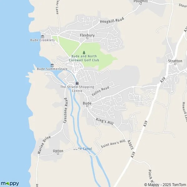 Here’s an overview of what you might find on a map of Bude, Cornwall, described in HTML formatting: